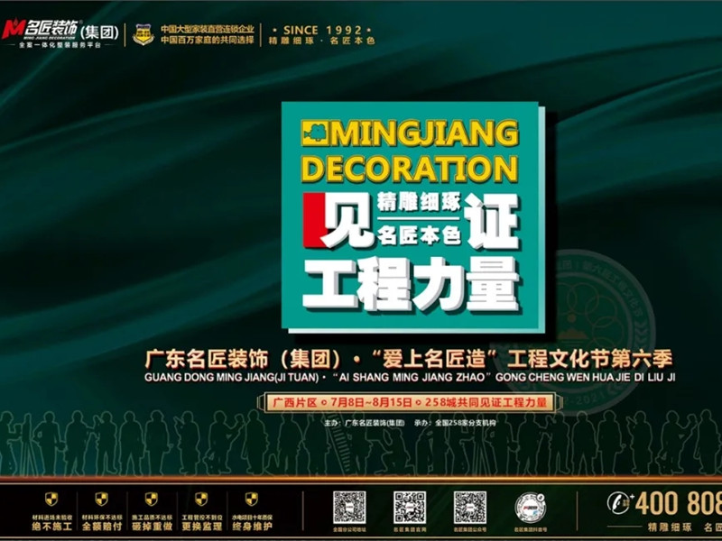 為了使業(yè)主享有更高端的家裝服務,住進品質有保障的放心家,每年舉辦工程文化節(jié),已經成為公司一項重要的傳統,激勵著大家在奮斗路上不忘以創(chuàng)新鑄造卓越工程,用初心成就幸福家庭。2021年7月7日,懷著這份初心與感動,名匠裝飾在廣……