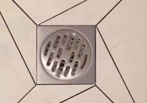 6、地漏四周用6厘米的瓷磚條斜拼,促使淋浴區(qū)用水時(shí)排水更快,地面無積水;